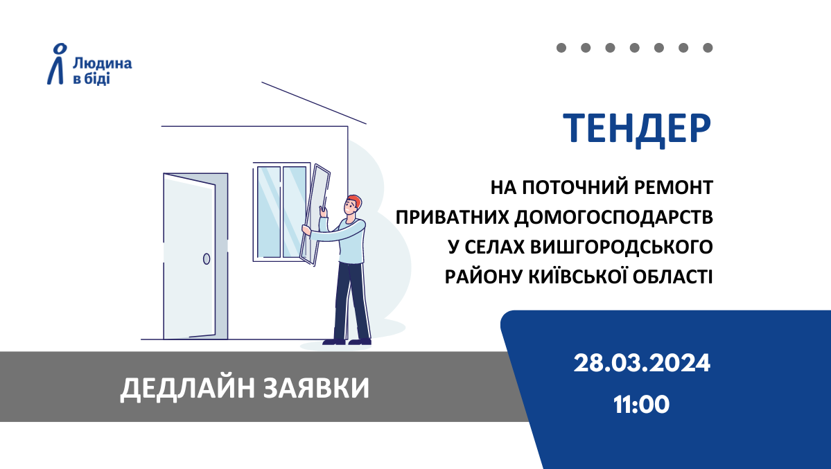 Тендер на поточний ремонт приватних домогосподарств у селах Вишгородського району Київської області