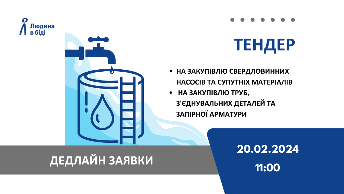 Тендер на закупівлю механізмів та матеріалів для водозабезпечення