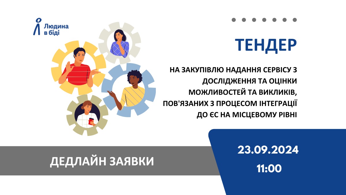 Чеська гуманітарна організація «Людина в біді» проводить відкритий тендер на закупівлю надання сервісу з дослідження та оцінки можливостей та викликів, пов'язаних з процесом інтеграції до ЄС на місцевому рівні. Запрошуємо компанії взяти участь.