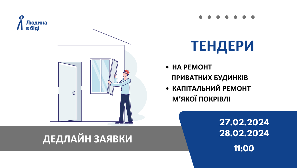 Чеська гуманітарна організація «Людина в біді» проводить переговорний тендер на закупівлю послуг з ремонту приватних будинків та капітального ремонту м’якої покрівлі з покриттям мембраною.